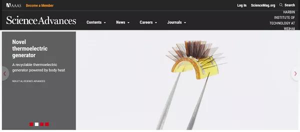 有鑒于此,華中科技大學楊榮貴教授研究團隊、美國科羅拉多大學肖建亮教授研究團隊、哈爾濱工業(yè)大學張麗霞教授研究團隊合作,在熱電器件研究領(lǐng)域取得重要突破。相關(guān)成果以“High-performance Wearable Thermoelectric Generator with Self-healing, Recycling and Lego-like Reconfiguring Capabilities”為題,于2月10日在線發(fā)表于Science Advances雜志上,被選為當期的首頁滾動推薦文章。哈爾濱工業(yè)大學的任偉博士和孫妍博士,以及東南大學的趙東亮教授為共同第一作者。