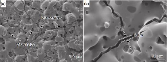 雖然包埋法制備 SiC 涂層的技術(shù)具有明顯的優(yōu)勢(shì),但是此方法仍存在以下缺點(diǎn):(1)包埋 SiC 涂層由于制備溫度高、反應(yīng)時(shí)間長(zhǎng),具有較大的表面粗糙度;(2)在包埋過(guò)程中,C/C 復(fù)合材料被熔融的液態(tài)硅硅化,會(huì)對(duì)薄壁件的力學(xué)性能造成嚴(yán)重的破壞;(3)由于重力因素,涂層的均勻性和厚度控制難。為了解決上述問(wèn)題,Zhou 等首先采用料漿噴涂與熱處理炭化的方法制備多孔 SiC 預(yù)涂層,該預(yù)涂層可以在一定程度上防止硅擴(kuò)散至基材,減少硅在高溫下對(duì) C/C 復(fù)合材料的侵蝕。然后引入氣相滲硅工藝,利用氣態(tài)硅在多孔預(yù)涂層中的浸滲填充與化學(xué)反應(yīng),形成致密的涂層(GSI-SiC-Si)。試樣在 1773 K 至室溫的熱震實(shí)驗(yàn)中經(jīng)受 30 次循環(huán)后,與常規(guī)包埋 SiC 涂層(PC-SiC-Si)相比裂紋尺寸明顯減少(圖 2),而且有 0.07% 的增重,在 1773 K氧化 500 h 后有 0.25% 的增重,表現(xiàn)出優(yōu)異的抗氧化性能。Miranda 等通過(guò)高速溶液等離子體噴涂工藝(HVSPS)在 C/C 復(fù)合材料表面制備了 SiO2/SiC梯度涂層,利用 SiO2 玻璃在高溫下的自愈合特性提高了涂層的抗氧化能力。
