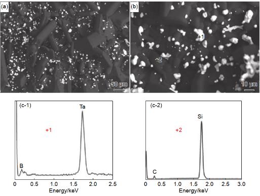 實(shí)驗(yàn)研究表明,超高溫陶瓷硼化物因具有優(yōu)異的抗氧化性能,可用來(lái)改性抗氧化硅基陶瓷涂層。硼化物改性的硅基涂層在 1200 ℃ 氧化時(shí)會(huì)生成B2O3,能夠起到很好的氧化防護(hù)作用;在 1200 ℃以上氧化時(shí),B 和 Si 的氧化物形成硼硅酸玻璃,其不僅可抑制 B2O3 在高溫下的蒸發(fā),且硼硅酸鹽玻璃自身高熔點(diǎn)、高黏度和氧擴(kuò)散速率低等特性均能提高涂層整體的抗氧化能力。Ren 等用原位反應(yīng)法在帶有 SiC 預(yù)涂層的 C/C 復(fù)合材料表面制備 ZrB2-SiC 抗氧化涂層,制備工藝采用價(jià)格較低的 B2O3、ZrO2、Si 和 C 粉末代替價(jià)格昂貴的 ZrB2粉末,降低了生產(chǎn)的成本,并且得到了較好的抗氧化性能。此外又采用液相燒結(jié)法制備出不同硼化物含量的 ZrB2、TaB2 和 HfB2 等改性 SiC涂層(圖 5),探究了各種硼化物在涂層中的抗氧化機(jī)理。Pourasad 等首先在石墨表面制備出功能梯度 SiC 涂層,之后通過(guò)以 Zr、Si 和 B4C 粉末為原料的原位反應(yīng)法制備 ZrB2-SiC 涂層,得益于氧化過(guò)程中穩(wěn)定 ZrSiO4 相的形成,涂層具有良好的抗氧化能力。Wang 等利用原位反應(yīng)法制備了添加硅化物(WSi2、CrSi2 等)的 HfB2-SiC 涂層,并探究了其在 1700 ℃ 的抗氧化和抗燒蝕能力。結(jié)果顯示涂層在氧化和燒蝕過(guò)程中均能形成多相鑲嵌的玻璃層結(jié)構(gòu),表現(xiàn)出良好的抗氧化和抗燒蝕能力,其中 CrSi2 含 量 為 15%( 質(zhì) 量 分 數(shù) ) 的 CrSi2-HfB2-SiC 涂層可保護(hù) C/C 復(fù)合材料在 1973 K 氧化 415 h后失重 1.6%,氧乙炔火焰燒蝕 90 s 后質(zhì)量損失率為 4.56 × 10-5 g/s。Kovaleva 等采用新型多腔爆轟加速器(MCDS)技術(shù),在 C/C 復(fù)合材料表面制備了添加 Y2O3 和 Al 的 ZrB2-MoSi2 涂層,并在 1500 ℃對(duì)試樣進(jìn)行熱處理。結(jié)果顯示,在加入 Y2O3 后,ZrO2 的穩(wěn)定性得到提升,SiO2 的分布也更加均勻。Astapov 等利用自蔓延高溫合成法合成復(fù)合粉體,再結(jié)合熱壓法制備出 ZrSi2-MoSi2-ZrB2 涂層,研究了其在 1400 ℃ 的氧化動(dòng)力學(xué)和機(jī)理,證實(shí)了該涂層保護(hù)機(jī)制的有效性。