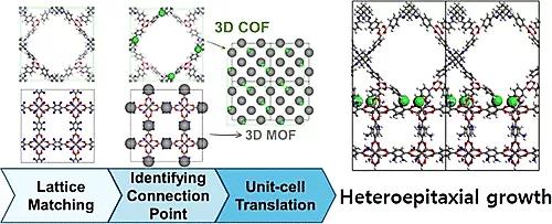 共價-有機框架(COFs)是多種能源/環(huán)境應用中具有前途的候選材料,但與金屬-有機框架(MOFs)等其他多孔材料相比,這些材料更難合成。這項研究開發(fā)了一種使用MOFs作為襯底的計算篩選算法,以便在理論上實現(xiàn)三維COFs(3D COFs)的異質外延生長。該算法在原子/分子水平上詳細描述了MOF@COF的界面,以便使用自下而上的方法構筑3D COFs。最終,該算法產生了19對適合在MOF表面異質外延生長3D COFs的MOF@COF候選材料。