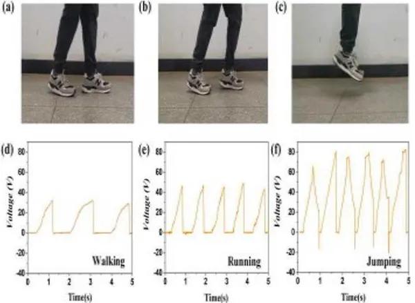 圖七、MT-TENG在人體運(yùn)動傳感中的應(yīng)用