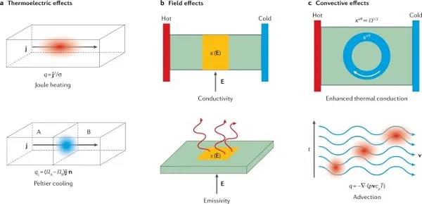 傳熱是支撐能量傳輸?shù)幕粳F(xiàn)象,通常由空間溫差引起。傳熱研究的主要關(guān)注點(diǎn)是溫度和熱流管理——將目標(biāo)加熱或冷卻到合適的溫度;以及能量收集——將熱源(如太陽)的熱能轉(zhuǎn)換為功能或其他形式的能量?,F(xiàn)如今控制熱量對于解決諸如全球變暖、能源危機(jī)和電子設(shè)備加熱等問題尤為重要。緩解這些問題需要先進(jìn)的工具來操縱不同長度尺度上各種形式的熱傳遞。近年來,材料科學(xué)和物理學(xué)的發(fā)展促進(jìn)了傳熱研究的復(fù)興。一方面,在傳統(tǒng)的加熱、冷卻和收集能源方面,新的方法正在出現(xiàn),具有更高的效率、精度、適應(yīng)性、可調(diào)性和緊湊性。另一方面,人們提出了將熱作為信息載體,并將其用于通信、探測、反探測和計(jì)算的新應(yīng)用。這些研究成果已成為導(dǎo)電熱材料、納米聲子學(xué)和遠(yuǎn)場和近場熱輻射管理等研究方向。近日,科羅拉多大學(xué)李保文教授、斯坦福大學(xué)范汕洄教授以及新加坡國立大學(xué)仇成偉教授提供了傳熱控制的統(tǒng)一觀點(diǎn),總結(jié)了利用人工結(jié)構(gòu)操縱物理參數(shù)和實(shí)現(xiàn)前所未有的傳熱現(xiàn)象的互補(bǔ)范例。本文分三個部分對熱流控制的三大類進(jìn)行了綜述。第一部分和第二部分著重討論了宏觀和微觀尺度下的熱傳導(dǎo)和熱輻射。第三部分討論了在傳導(dǎo)、輻射和對流中積極引入熱源或調(diào)整具有多重物理效應(yīng)的材料參數(shù)的努力。最后,作者分析了這一研究領(lǐng)域面臨的挑戰(zhàn),探討了可能的新方向,特別是拓?fù)錈嵝?yīng)、熱波和量子熱效應(yīng)。該綜述近日以題為“Transforming heat transfer with thermal metamaterials and devices”發(fā)表在知名綜述Nature Reviews Materials上。