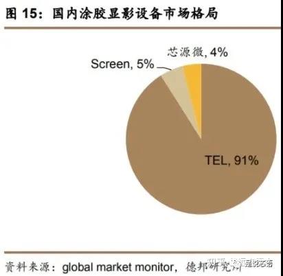 全球涂膠顯影設備市場中,日本TEL這一家公司的市占率達到87%,達到了絕對壟斷地位。DNS公司,西美事公司,SCREEN公司,這三家公司合起來才占了13%。這個領域中外差距極大,以前根本就沒有中國公司什么事。目前涂膠顯影設備中國已經(jīng)取得了突破,芯源微和沈陽芯源可以制造國產(chǎn)替代產(chǎn)品,目前已經(jīng)達到了28nm的工藝水平,14nm設備即將研發(fā)成功。在中國國內市場,只有芯源微打開了市場,目前占據(jù)了4%的市場銷售額,國際市場暫時就不想了。