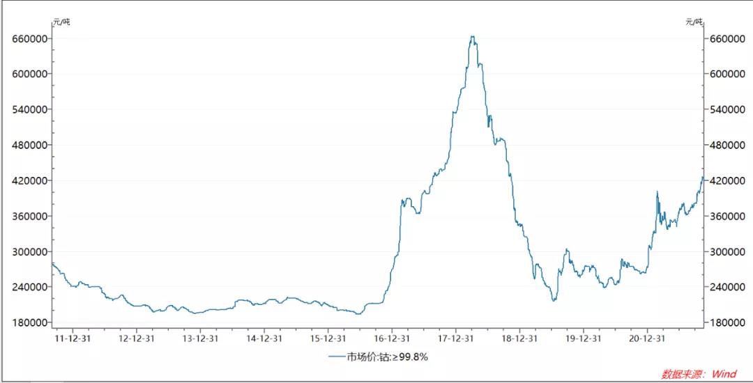 就以鈷為例,盡管在過去的一段時間里經(jīng)歷了一段極為瘋狂的上漲,但其實距離在2018年初的高位相差甚遠(yuǎn)。而且近期的原材料價格暴漲,與疫情造成的全球性供應(yīng)鏈-物流雙重危機(jī)密不可分,盡管如今我們無法預(yù)測危機(jī)什么時候會緩解,但終究是不能忽視的風(fēng)險。