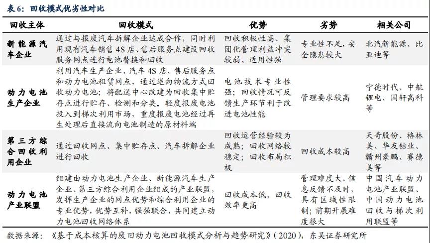 在三種基本回收路線的驅(qū)動下,動力電池回收行業(yè)形成了四種基本模式,也代表了四種主要的參與者組織形式: