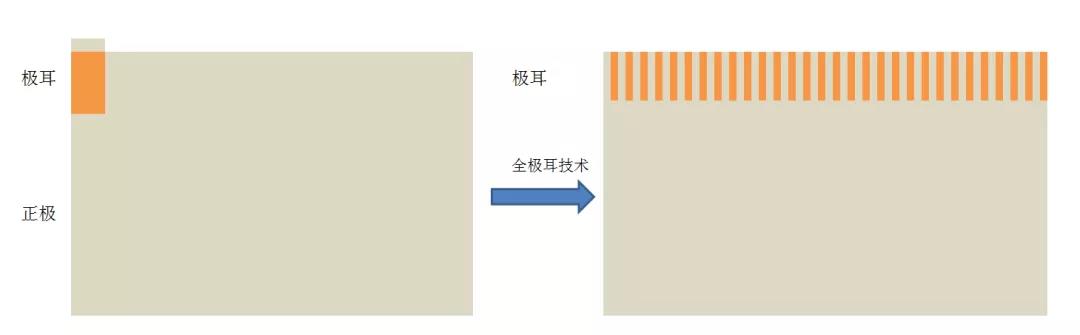 具體到電池充放電過程,電子是在橫穿整個電芯之后到達與電芯集流體焊接的極耳,再通過外部導(dǎo)線到達另一極。在電池工作中,電子的流動極易導(dǎo)致極耳焊接接處局部熱量過大,加之接觸點小,沒有足夠散熱空間,這一直是電池安全的瓶頸,當(dāng)前的快充也受制于極耳。