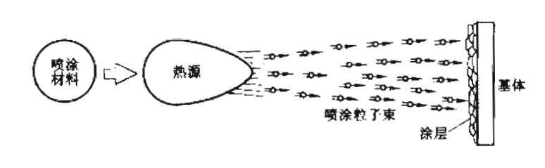 熱噴涂技術工藝方法很多,但無論何種工藝方法,噴涂過程中形成涂層的原理和涂層結構基本一致。熱噴涂形成涂層的過程一般經歷四個階段:噴涂材料加熱溶化階段、霧化階段、飛行階段、碰撞沉積階段。