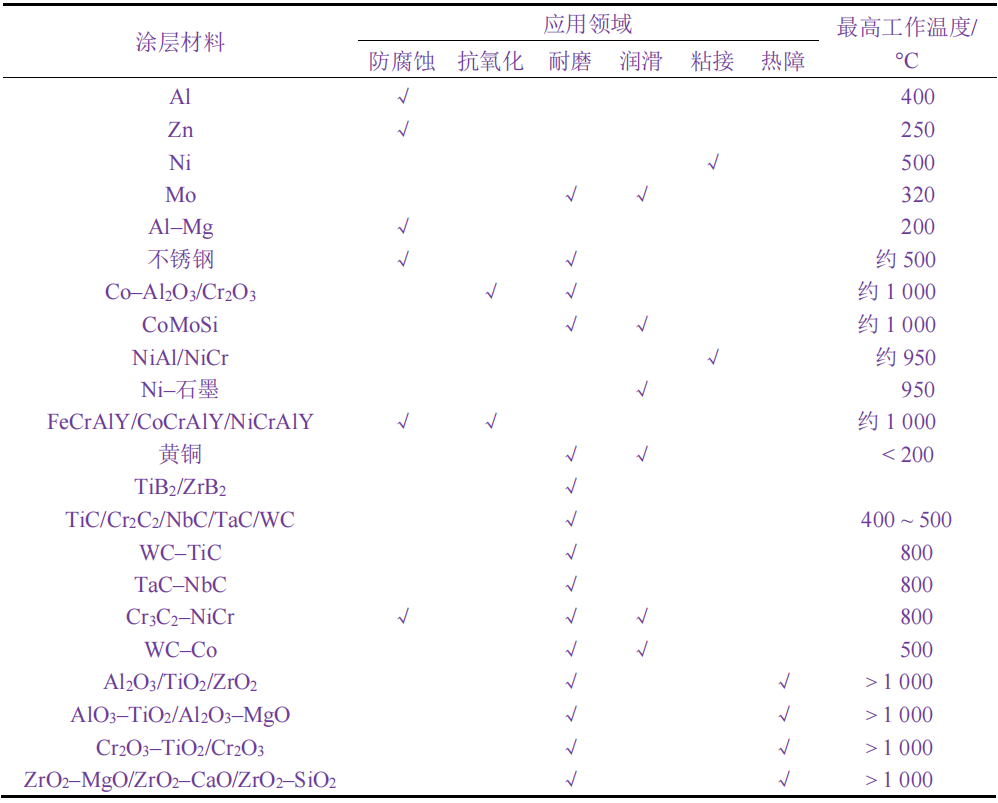 ↓↓不同熱噴涂耐磨涂層的應用領域