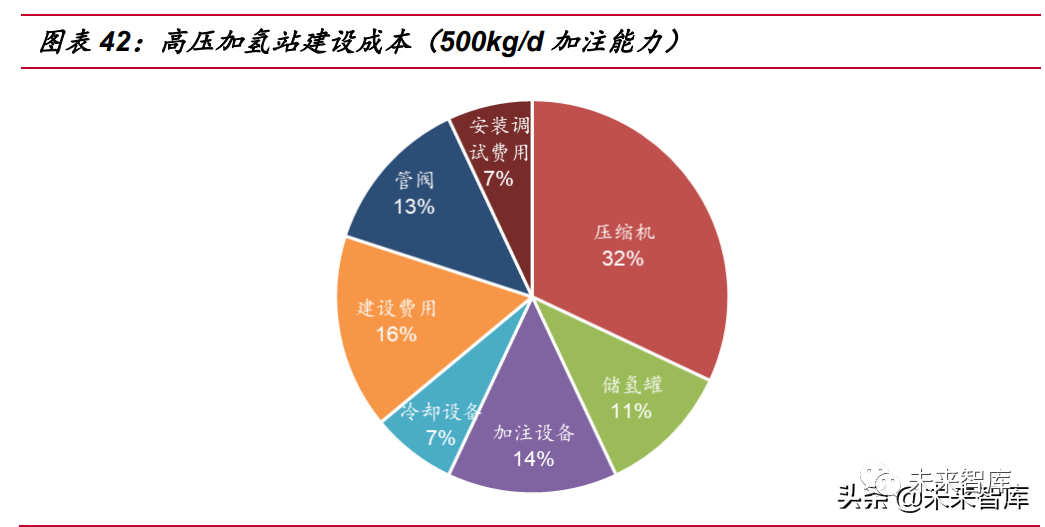 在當(dāng)前以高壓氣態(tài)實現(xiàn)氫儲運的氫能發(fā)展初級階段,氫氣壓縮機是我國氫能儲運 所需的關(guān)鍵設(shè)備,當(dāng)前國內(nèi)大多數(shù)氫氣壓縮機主要依靠進(jìn)口,投入及維護(hù)成本高,尤 其以加氫站所需壓縮機,以 500kg/d 加注能力加氫站建設(shè)為例,壓縮機成本占據(jù)加氫 站總成本的三分之一。