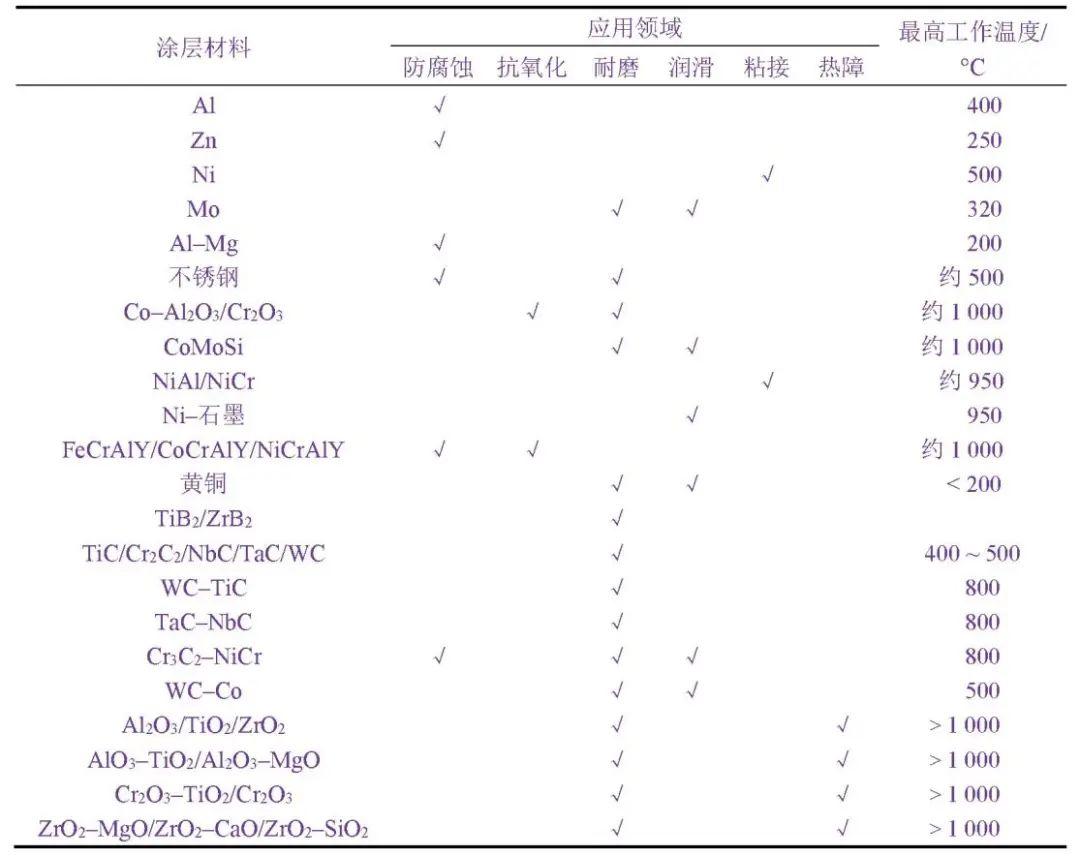 常見熱噴涂材料及應(yīng)用