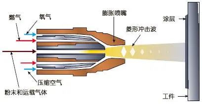 超音速空氣燃料噴涂(HVAF)是在超音速火焰噴涂(HVOF)技術(shù)的基礎(chǔ)上發(fā)展起來的,兩種噴涂技術(shù)的主要不同點(diǎn)是HVAF采用壓縮空氣為燃料代替氧氣,兩者在火焰溫度和粒子飛行速度方面也都有一定差異。
