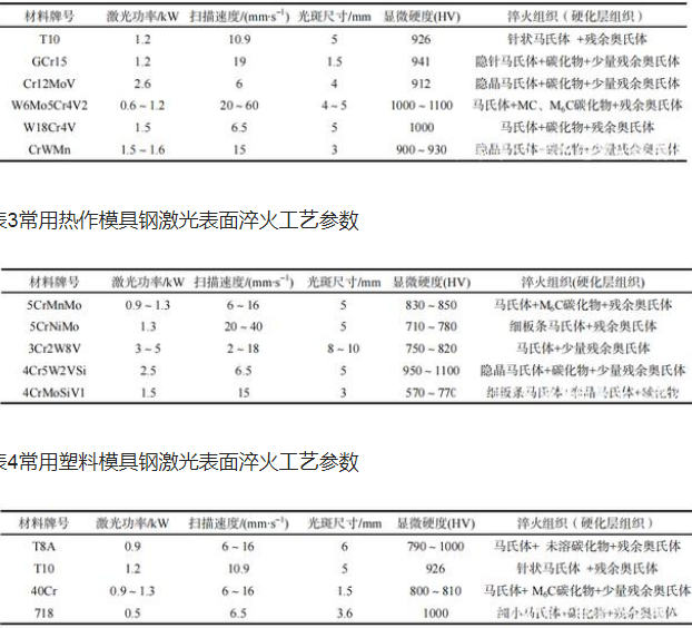 表2常用冷作模具鋼激光表面淬火工藝參數(shù)